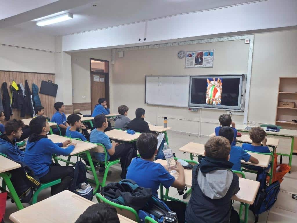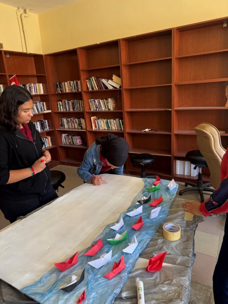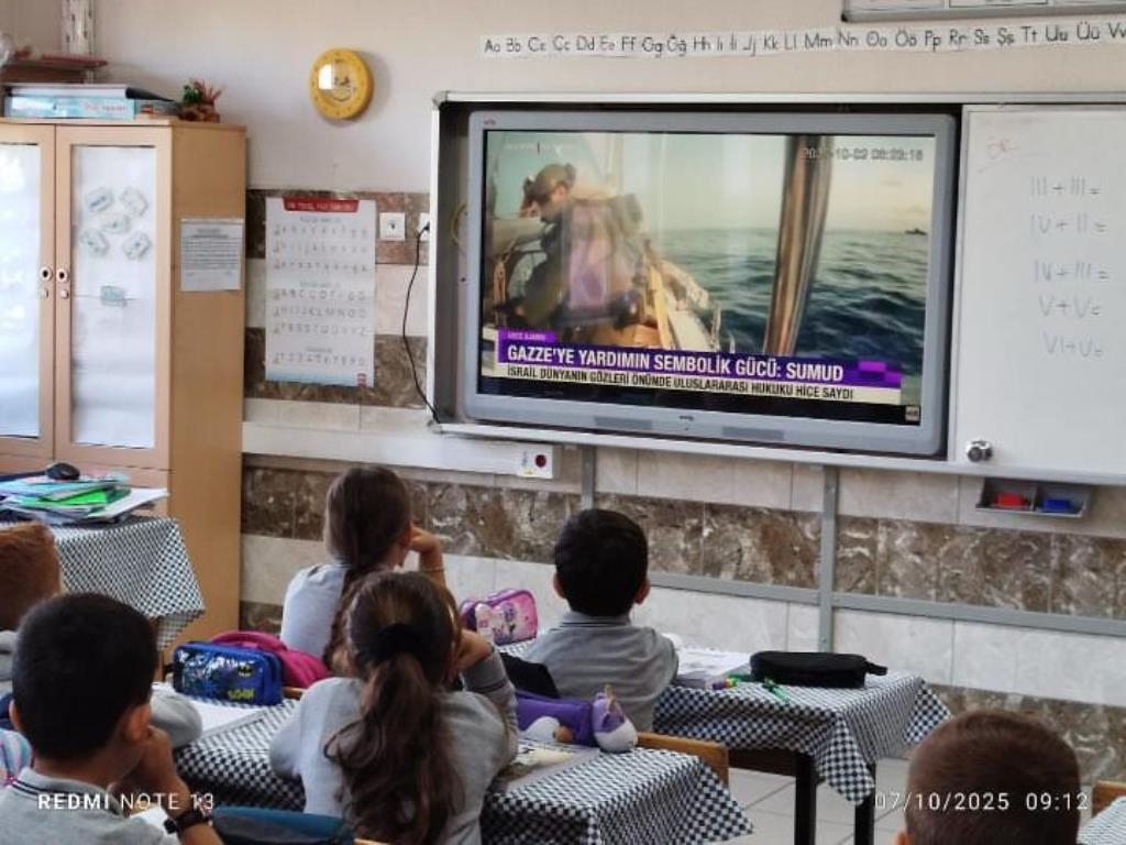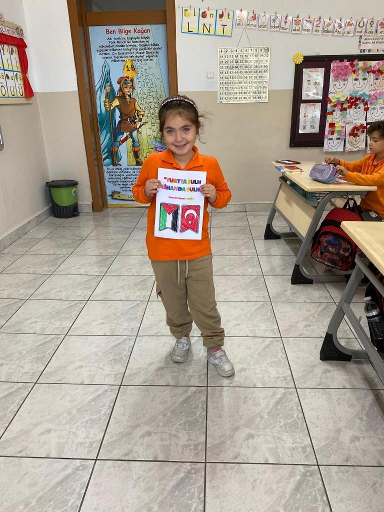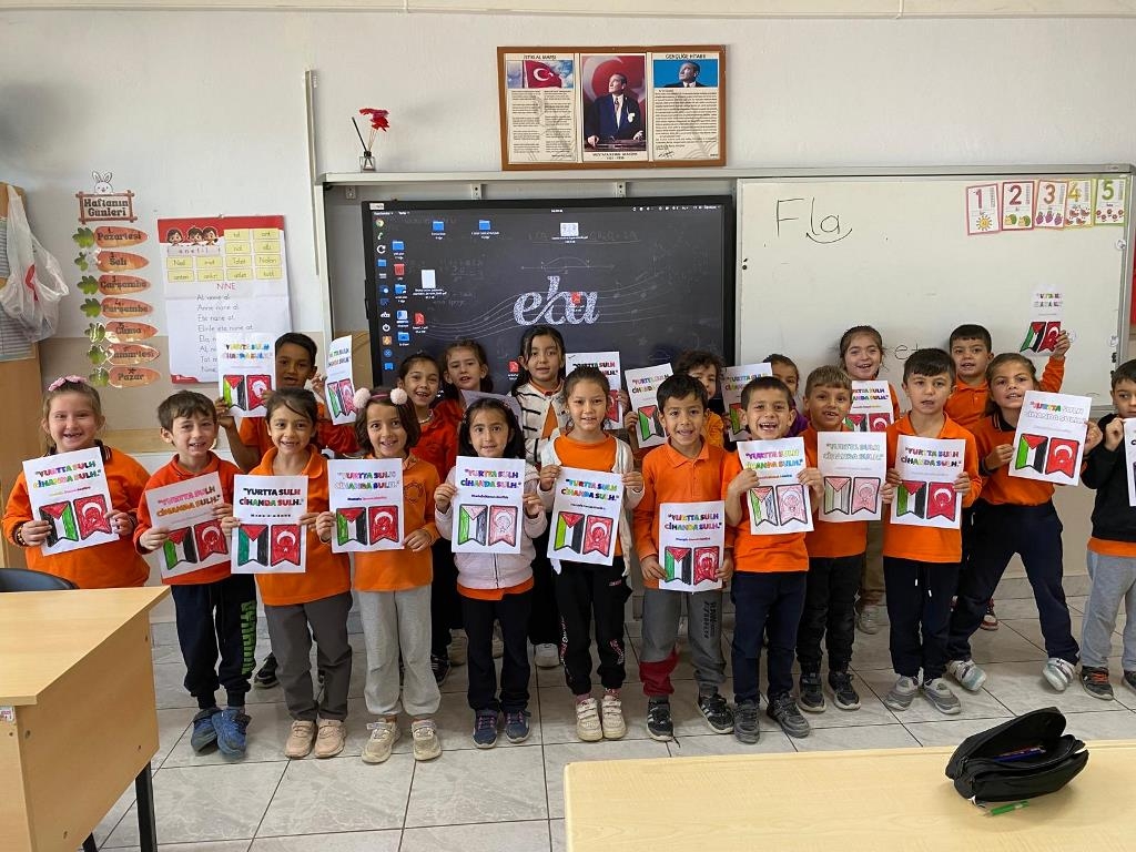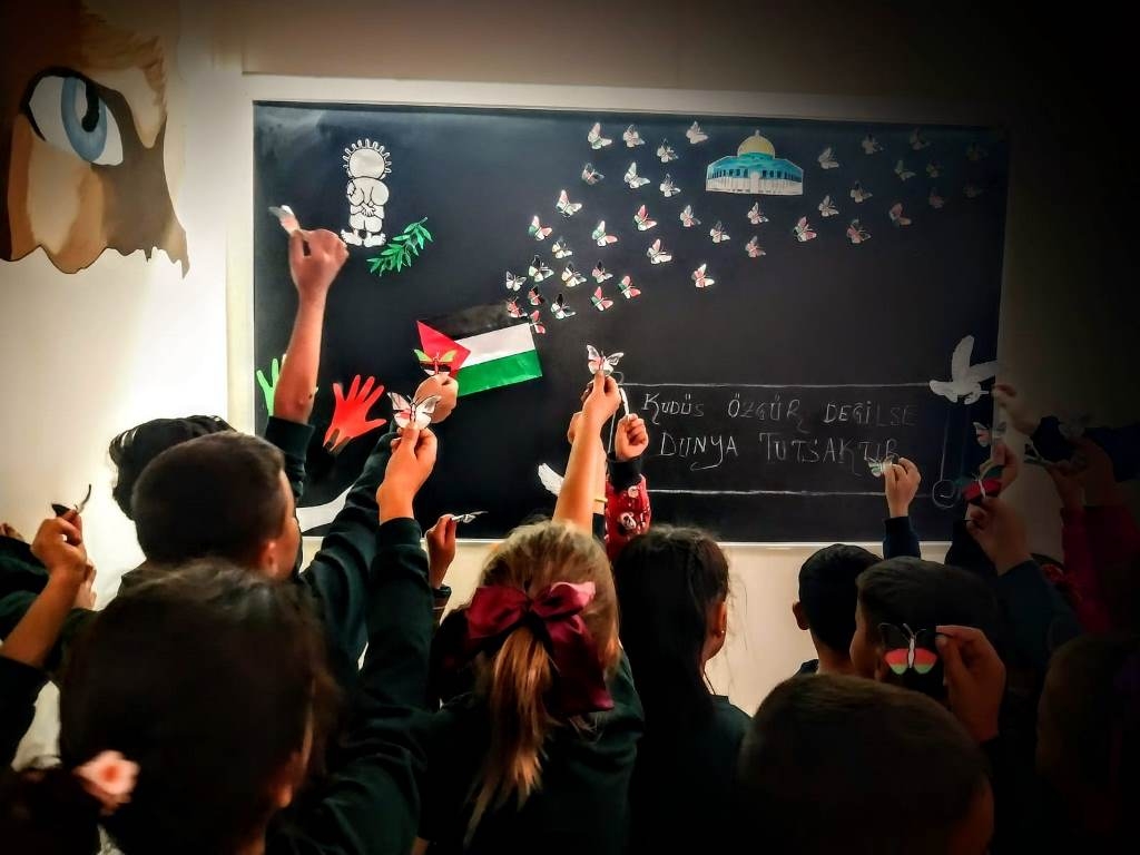 Filistin meselesi ve Küresel Sumud Filosu gündemi çerçevesinde düzenlenen etkinliklerde, eğitim camiası ortak bir vicdanı temsil etme sorumluluğuyla hareket etti. Öğrenciler, okul bahçelerinde ve salonlarda bir araya gelerek ellerinde Türk ve Filistin bayraklarıyla Gazze halkına destek mesajları verdi.