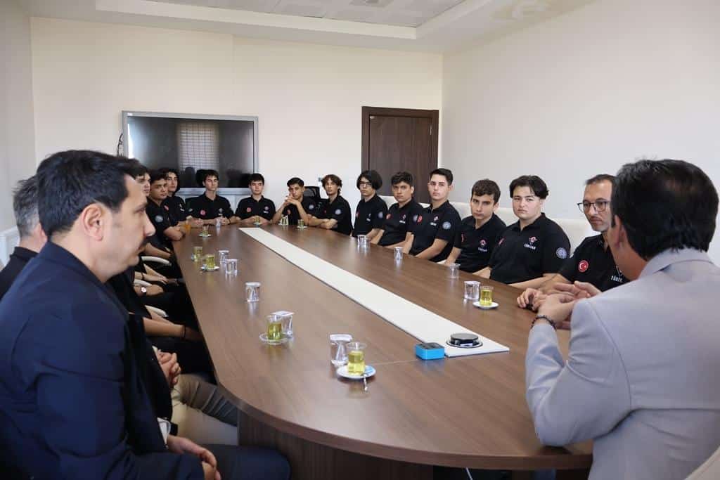 TEKNOFEST'ten ödülle dönen öğrenciler, danışman öğretmenleri ve aileleriyle birlikte İl Millî Eğitim Müdürü Mehmet Çalışkan'ı makamında ziyaret etti. Ziyarette öğrencileri tek tek tebrik eden İl Müdürü Mehmet Çalışkan, yaptığı konuşmada şu ifadelere yer verdi: "Dünyanın en büyük teknoloji festivalinde Karaman'dan öğrencilerimizin dereceyle dönmesi hepimiz için büyük bir gurur kaynağı. Vali Ali Akan İlkokulumuzdan Erva Esila ve Yüsra Sıla Albayrak kardeşlerimizin geliştirdiği AYAS projesi, sadece bir teknoloji ürünü değil; insan hayatına dokunan, toplumsal sorumluluk bilincini yansıtan örnek bir yeniliktir. Aynı şekilde Temizel Ünlü Mesleki ve Teknik Anadolu Lisesi öğrencilerimizin İHA alanındaki başarıları da Karaman'daki mesleki eğitimin geldiği noktayı göstermektedir." dedi.