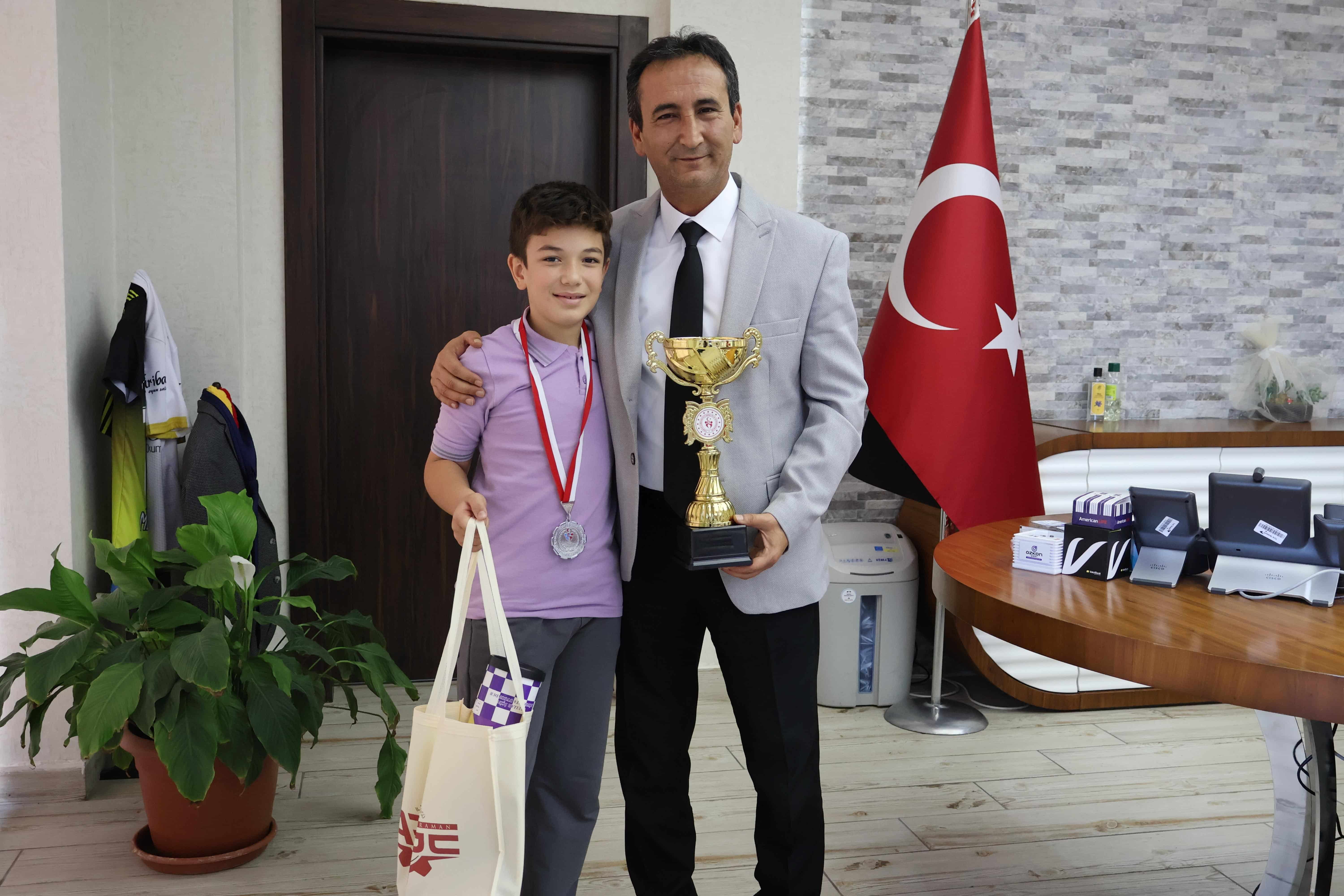 Başarılı sporcu, ailesi ve Piri Reis İlkokulu Müdürü Süleyman Koçgürbüz ile birlikte İl Millî Eğitim Müdürü Mehmet Çalışkan'ı ziyaret etti. Ziyarette Yusuf Duhan Koçak'ın elde ettiği derecenin mutluluğu paylaşılırken, Mehmet Çalışkan minik sporcuyu ödüllendirerek başarısından dolayı tebrik etti.