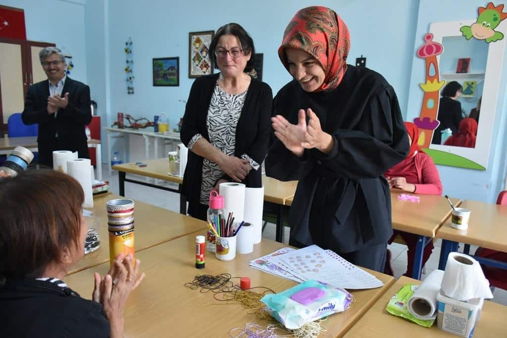 Bu kapsamda Karaman Vali Yardımcısı Esengül Korkmaz Çiçekli ile İl Millî Eğitim Müdür Vekili İsmail Kılınç, Özel Eğitim Meslek Okulunu ziyaret ederek kurs faaliyetlerini yerinde inceledi. Ziyarette Halk Eğitimi Merkezi Müdürü Feyzan Koçak ve görevli usta öğreticiler, kursların işleyişi, öğrencilerin çalışmaları ve elde edilen kazanımlar hakkında ayrıntılı bilgiler verdi.